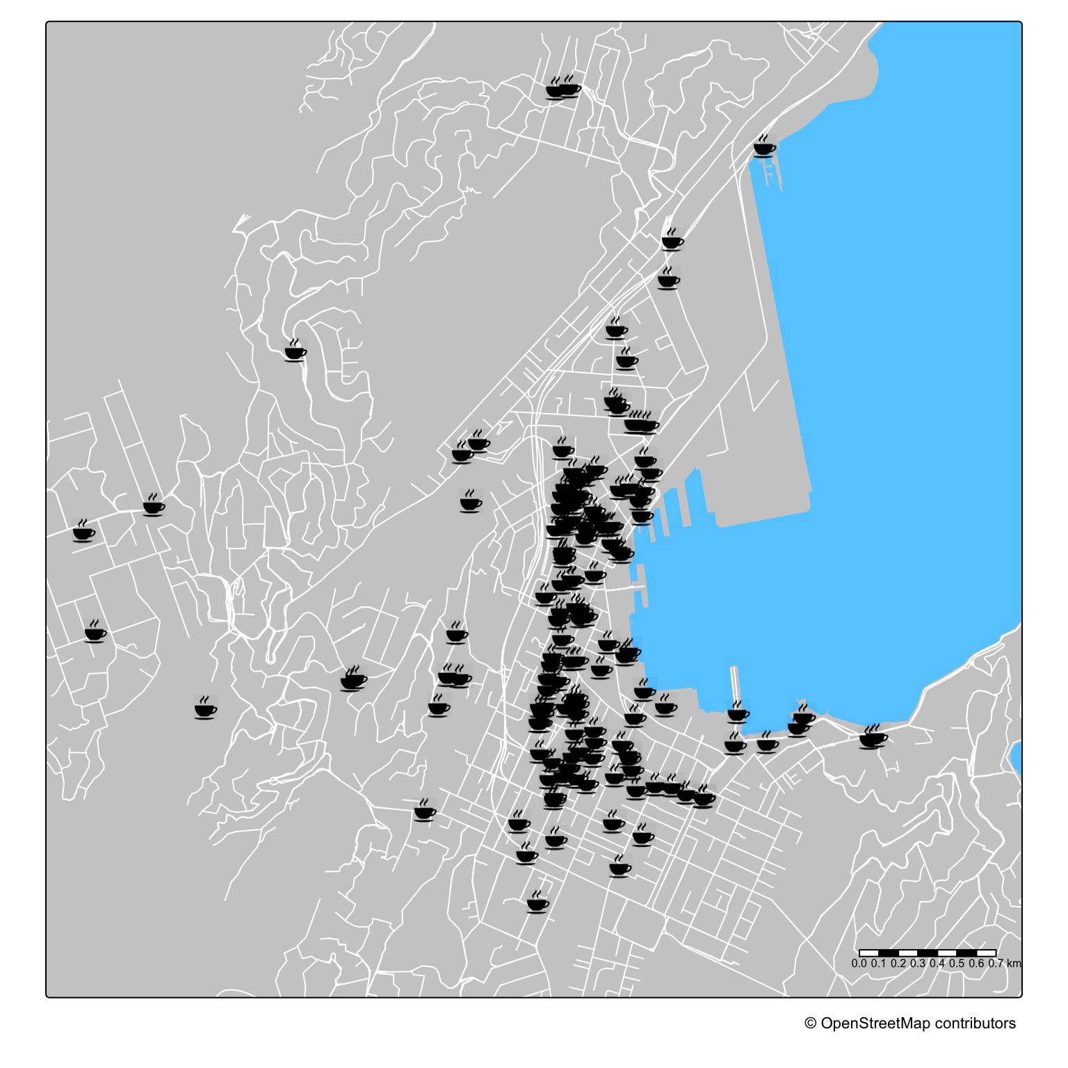I don’t know that I arrived at any specific conclusions concerning the relative merits of tmap and ggplot2. It’s often easier to use ggplot2 if you need tools from the wider R ecosystem (e.g. see 29 Population). But if you want to play fast and loose with colour palettes, tmap is more forgiving than ggplot2, and crucially it is OK with letting you apply the same aesthetic (e.g. colour) to more than one dataset. In mapping applications that is a pretty commonly encountered requirement. tmap also has more traditional ‘map junk’ (scale bars, north arrows, web basemaps) baked in, so you don’t have to call on other packages like ggspatial. For what it’s worth, if you are doing additional work on a graphic in Inkscape or Illustrator, I have generally found the SVGs exported by tmap to be more easily managed (the layering is better, for example).