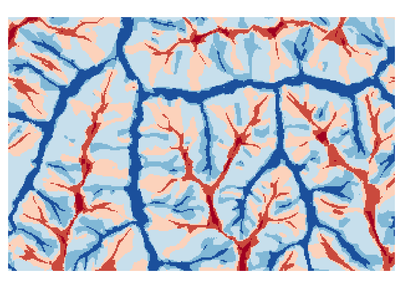 wbt_geomorphons("data/dem.tif", "data/geomorphons.tif", search = 20)