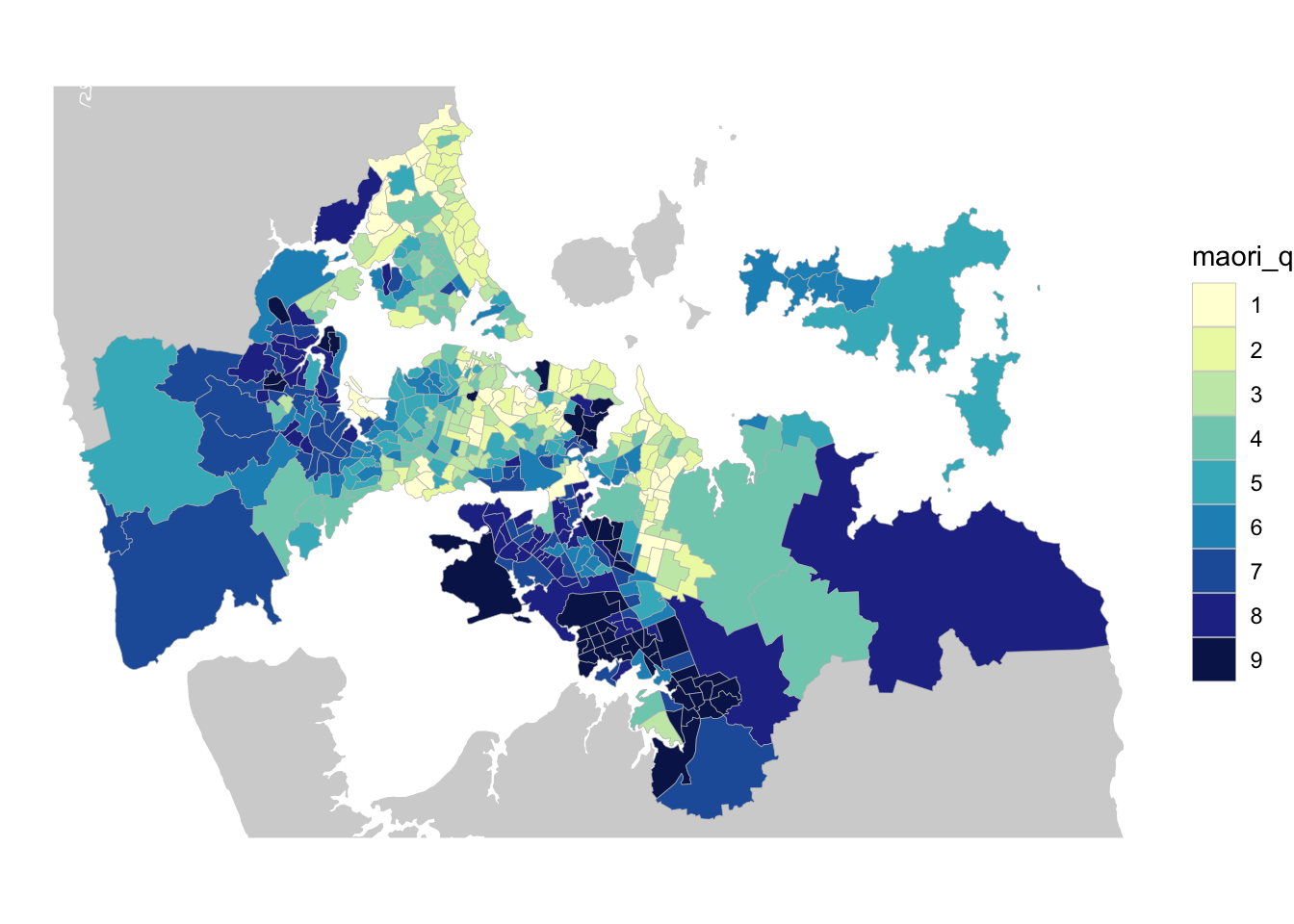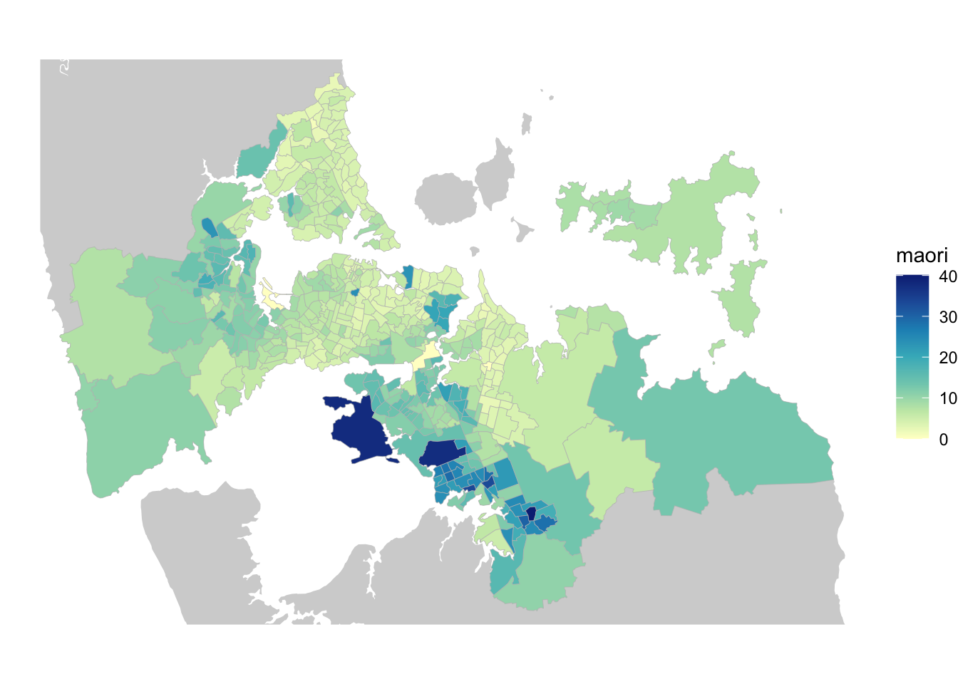 geom_sf(data = ak, aes(fill = maori), colour = "grey",