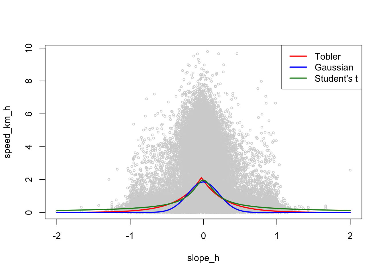 legend("topright", legend = c("Tobler", "Gaussian", "Student's t"),