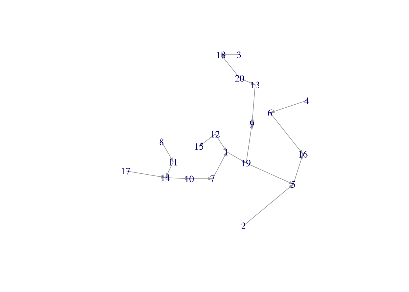 theme_ipsum_rc()We can use a minimum spanning tree to make a network instead… with one reservation: the minimum spanning tree of a directed graph is not found using algorithms for MSTs on undirected graphs, such as that offered by igraph::mst.