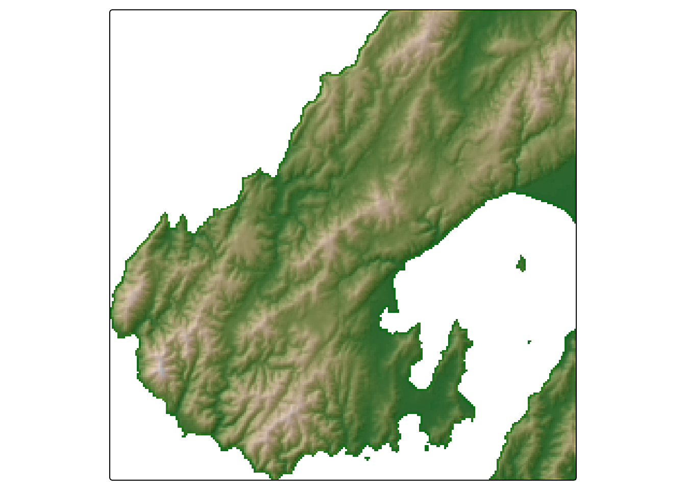 geom_raster(aes(x = x, y = y, fill = dem)) +