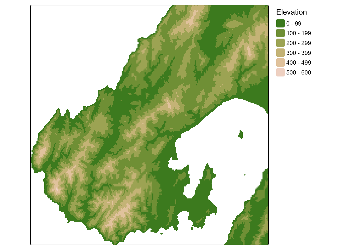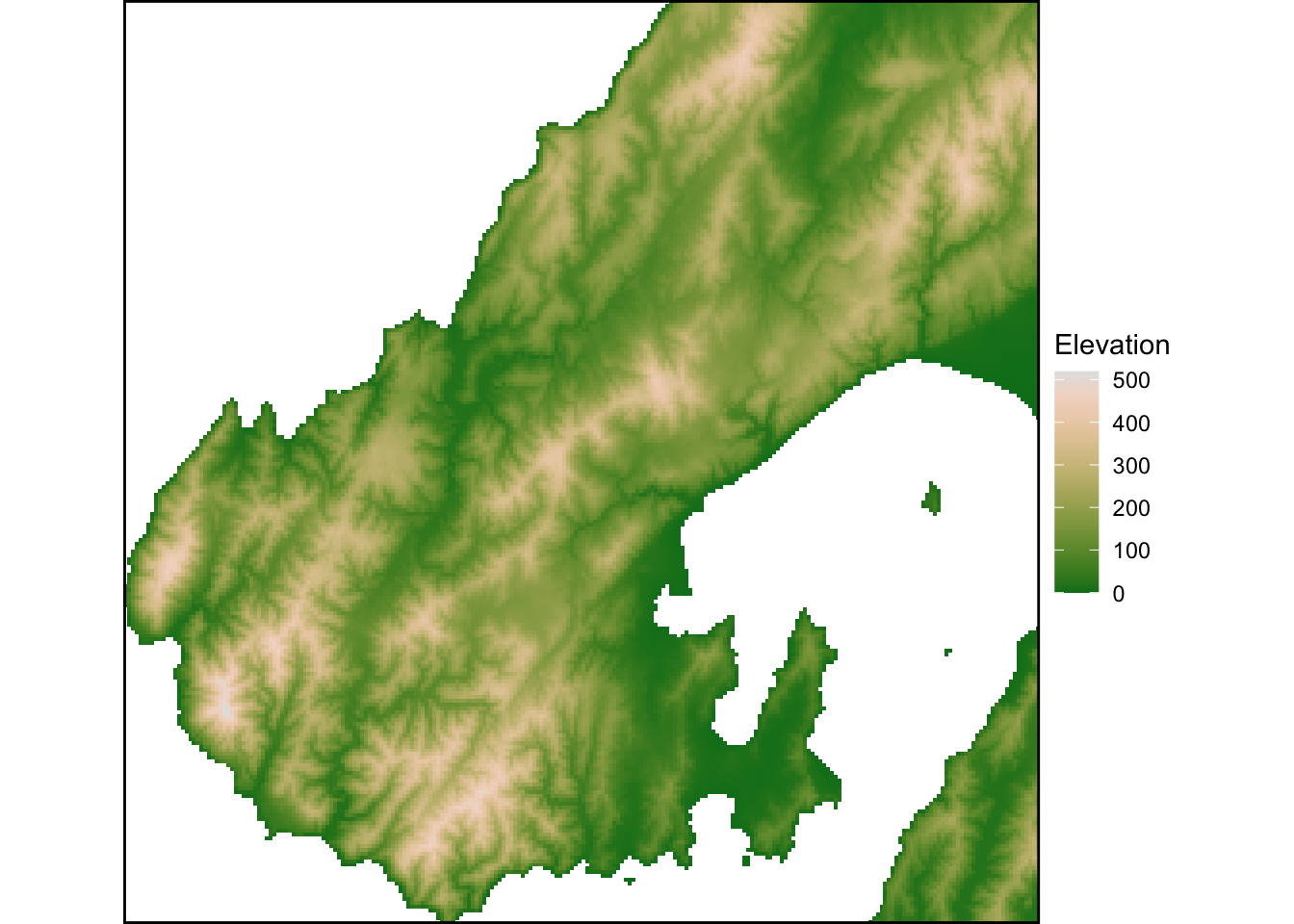 palette = "hcl.terrain2", name = "Elevation") +