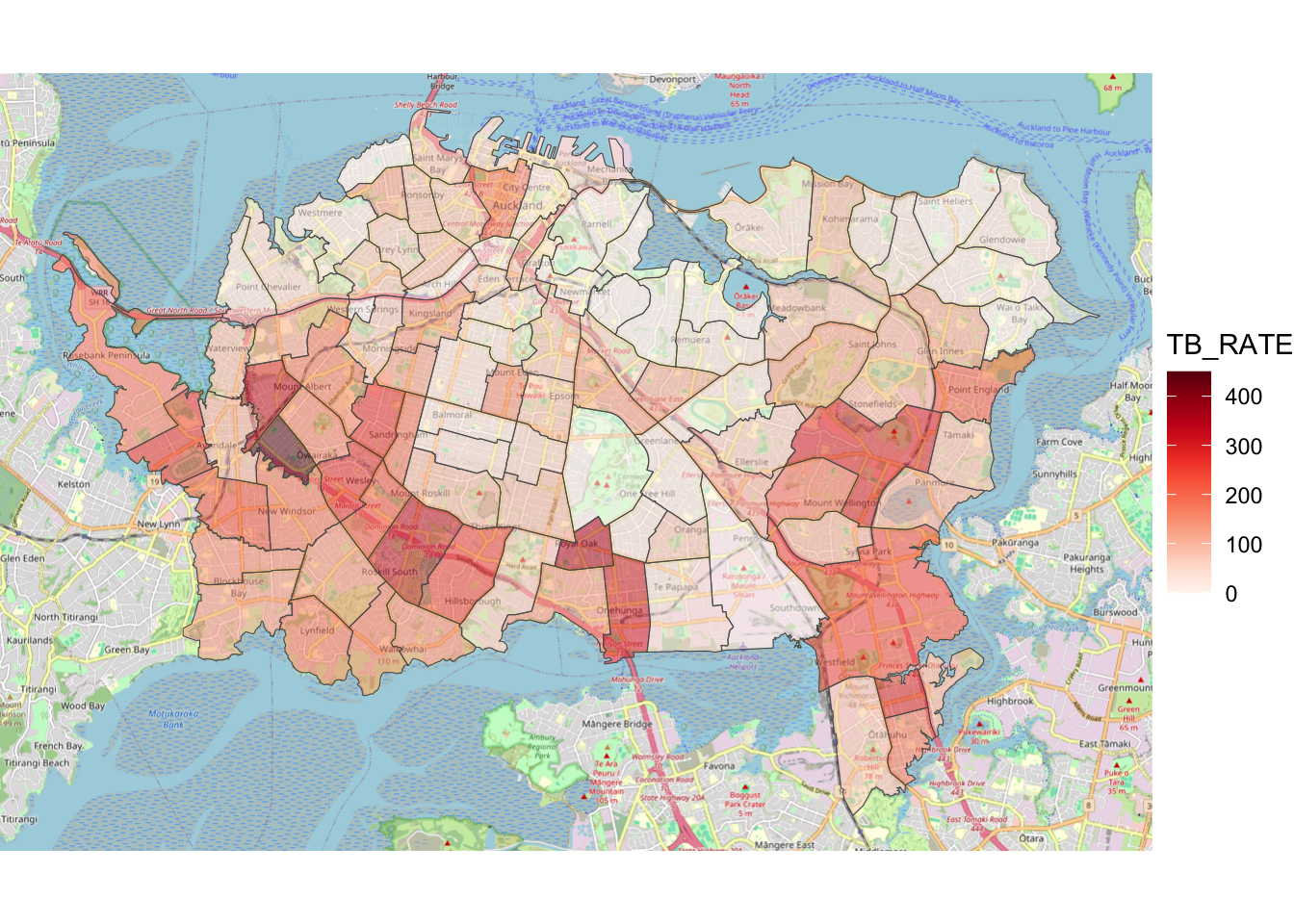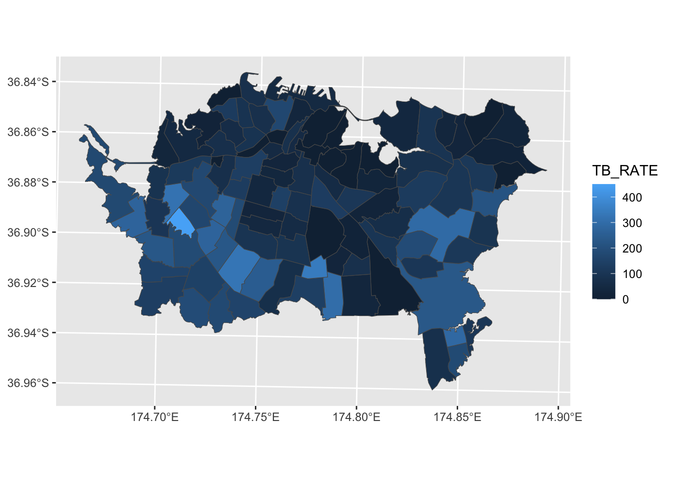 To illustrate, here’s an old dataset I often use: TB cases in Auckland City in 2006 by Census Area Unit:
