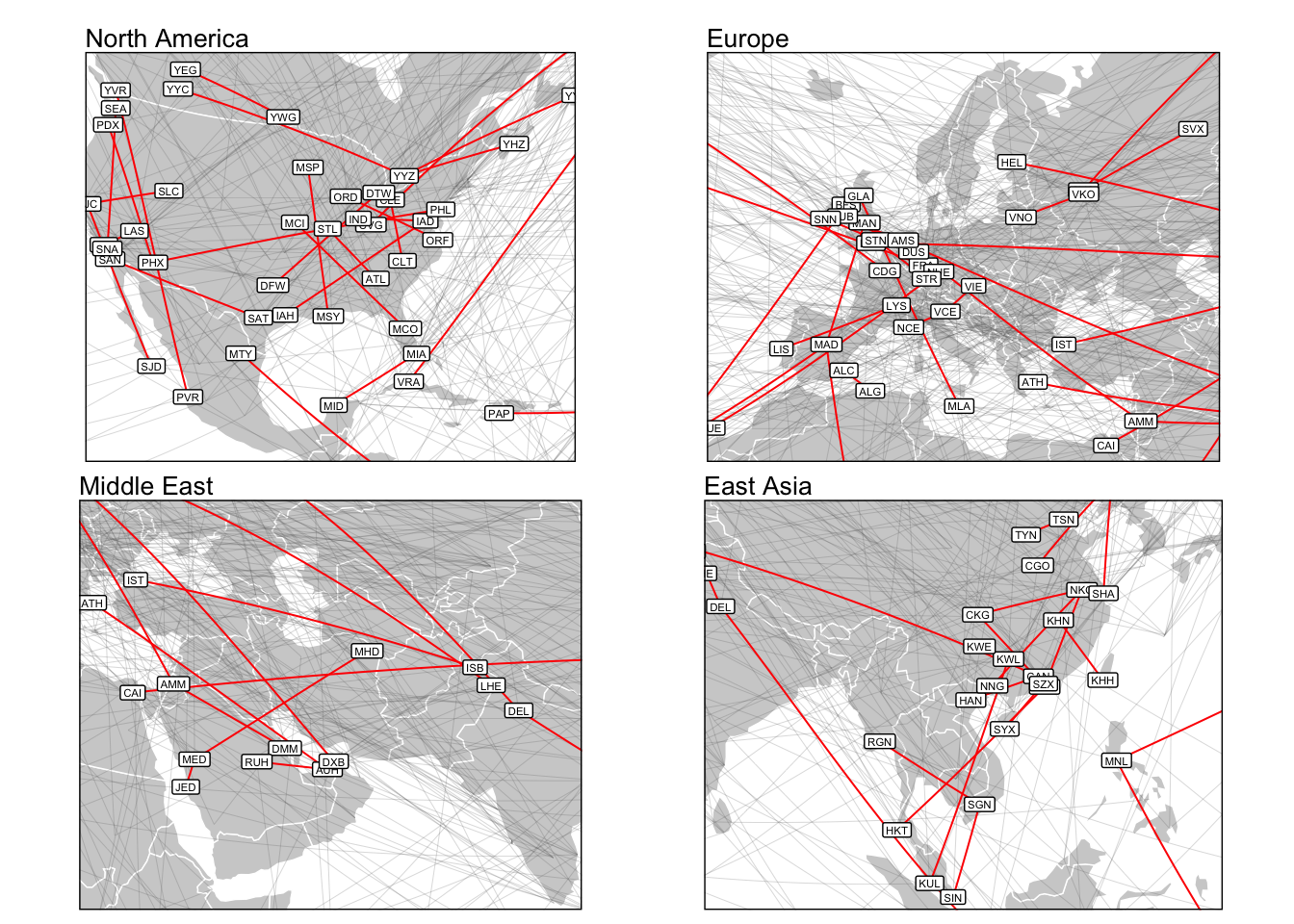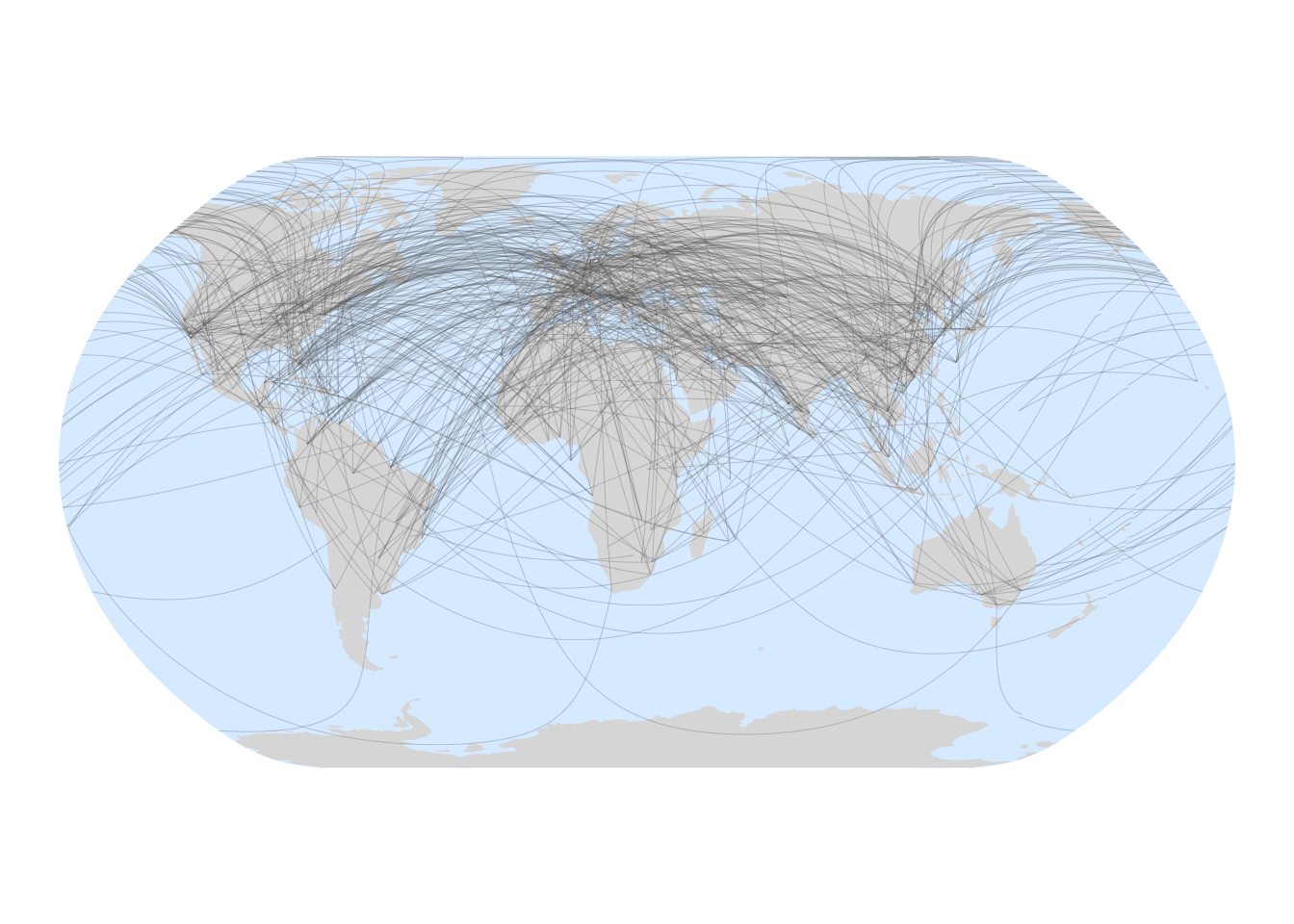 Sadly, it’s difficult to source open data on regularly scheduled flights, because it’s commercially valuable information. The best I could do was from openflights.org, but as they say “The third-party that OpenFlights uses for route data ceased providing updates in June 2014”.5 Anyway, we can filter out routes from our off-by-one dataset that don’t appear in this list.