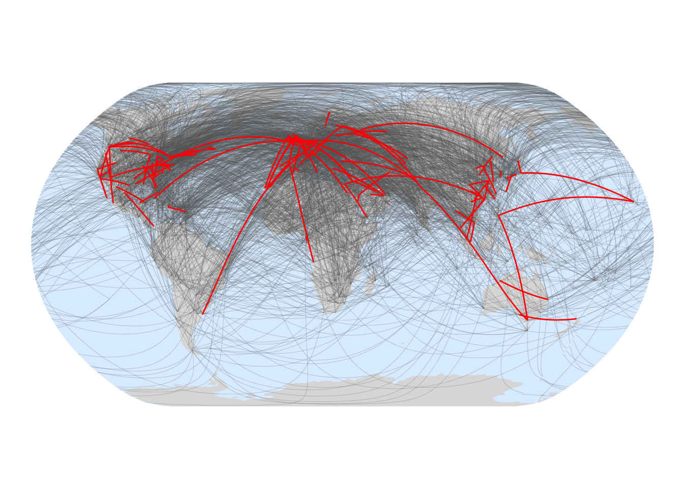Sadly, it’s difficult to source open data on regularly scheduled flights, because it’s commercially valuable information. The best I could do was from openflights.org, but as they say “The third-party that OpenFlights uses for route data ceased providing updates in June 2014”.5 Anyway, we can filter out routes from our off-by-one dataset that don’t appear in this list.