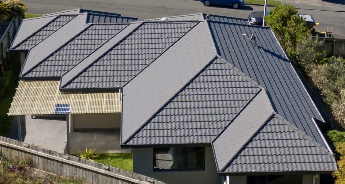 Unsurprisingly, things get complicated quickly when we move away from simple convex shapes, especially when we add the additional complication of holes. Sadly, there is no st_skeleton function in sf. Happily, this being R, there’s a package for that™. raybevel is a package for generating straight skeletons including extensions into 3D and roof models. If you squint at the simple example, you can see the relevance of roof models to this topic. In fact, according to wikipedia, this is the context in which the straight skeleton of a polygon first appeared as far back as 1877. The picture below (snipped from a recent property listing in Wellington) reinforces this point.