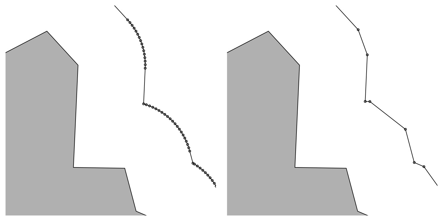 If you are doing a lot of this kind of thing, it can get very ugly. If I sound like I’ve been burned by this problem, it’s because I have. When developing the weavingspace module in both its early R and more recent python incarnations, I am working with polygons at a low-level all the time and before I had realised this was a problem it wasn’t unusual for me to be working with ‘rectangles’ with dozens or even hundreds of corners!