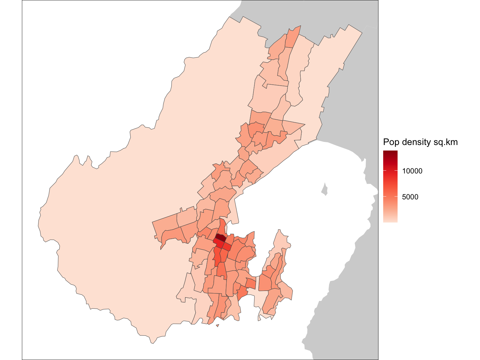 scale_fill_distiller("Pop density sq.km", palette = "Reds", direction = 1) +