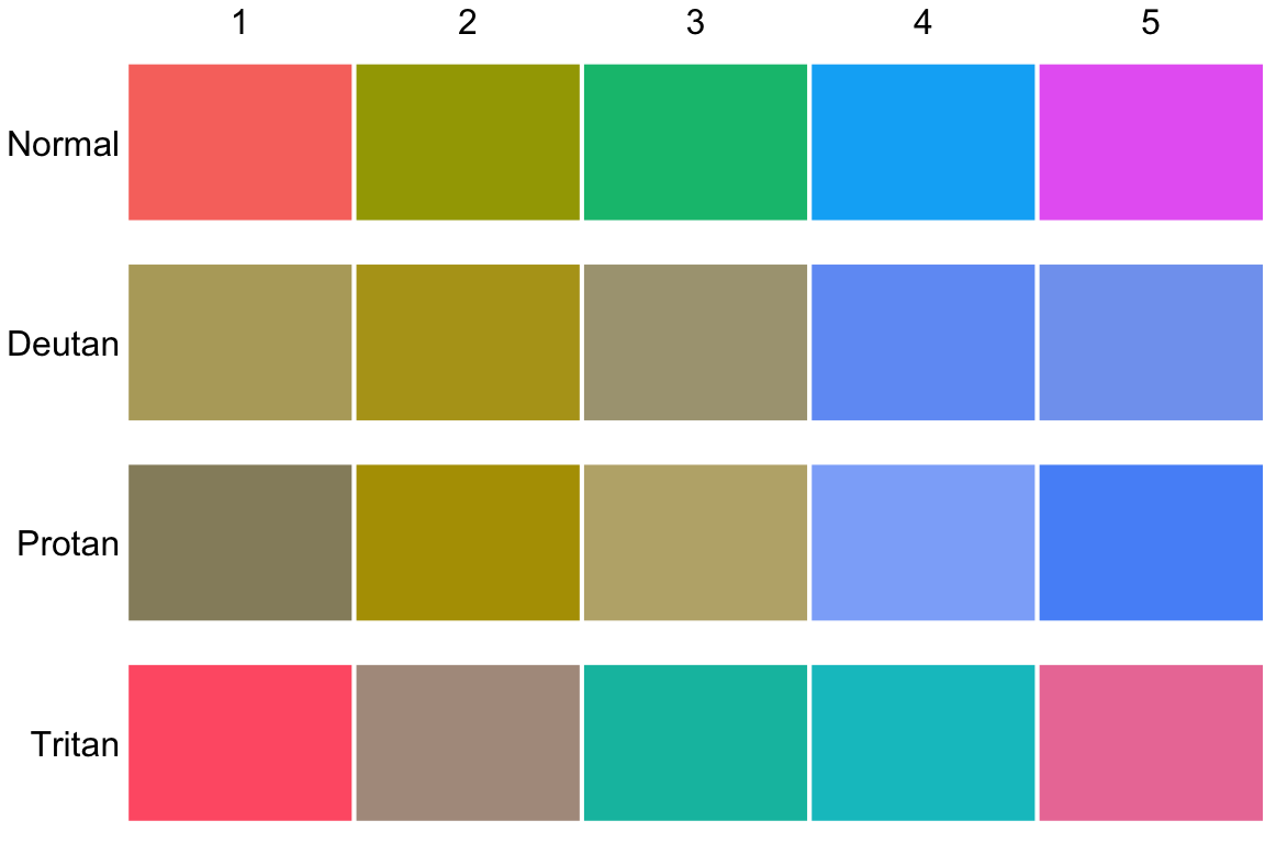 levels = c("Normal", "Deuteranopia", "Protanopia", "Tritanopia", "Achromatopsia"))